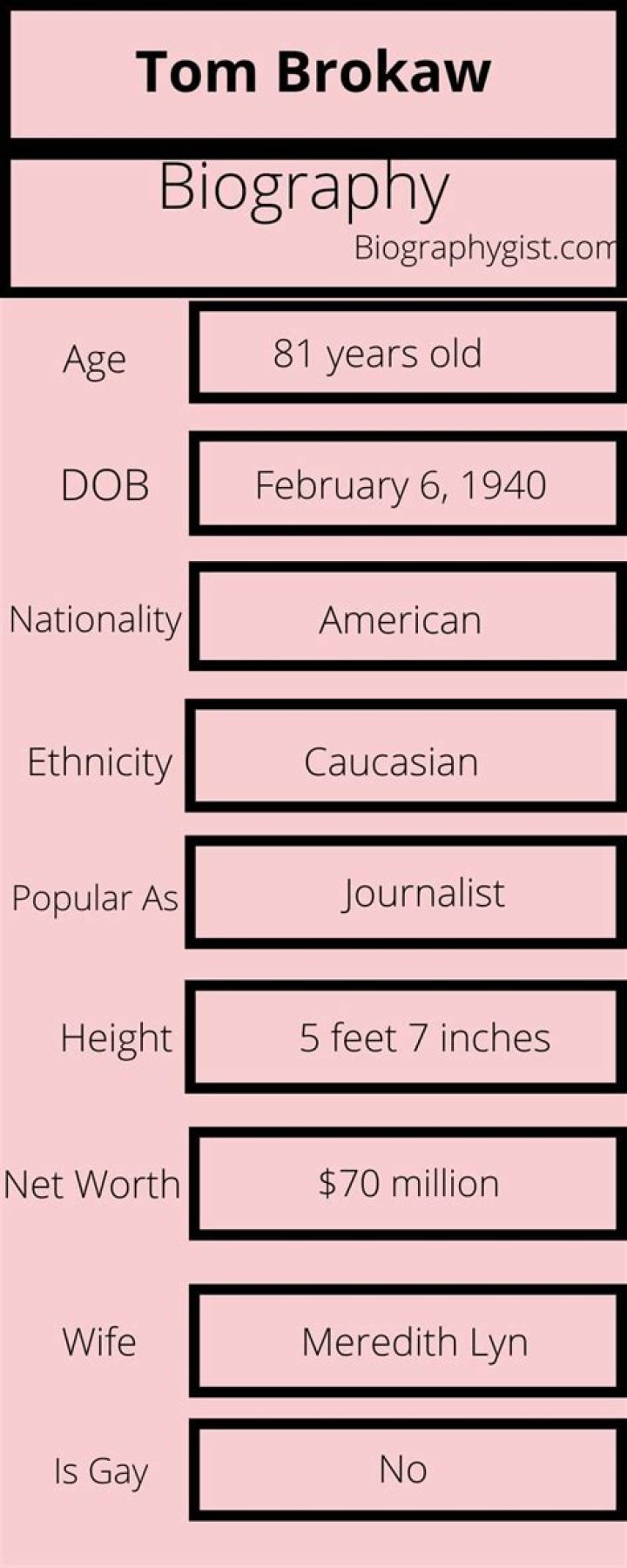 Tom Brokaw is a notable American radio journalist, TV anchor, and creator from South Dakota. Tom Brokaw is most popular for his New York Times smash hit ...